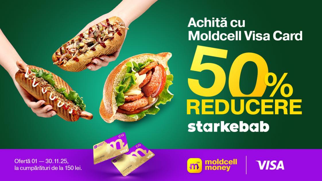 Осень? Самое время для горячего кебаба, ароматных соусов и уюта – в дороге, дома или в тёплых кафе Starkebab, где всегда ждут с улыбкой. А с 4 по 30 ноября 2025 года Moldcell Visa Card делает твою осень ещё вкуснее – минус 50% от счёта!